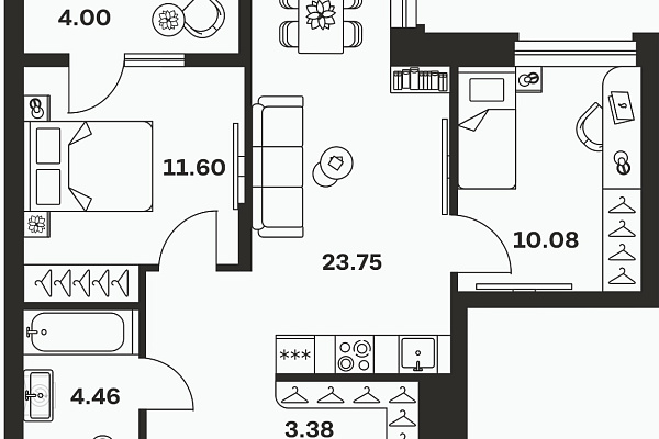 | Количество спален | 2 |