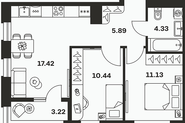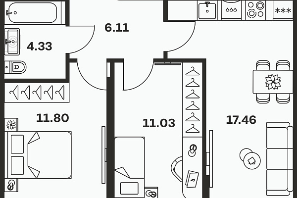 | Кол-во комнат | 2 |
