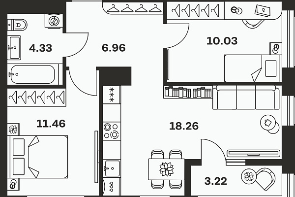 | Количество спален | 2 |