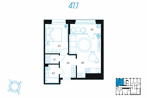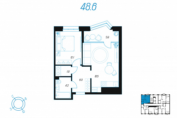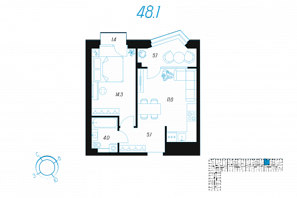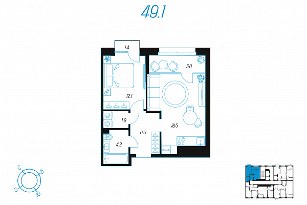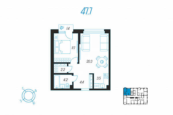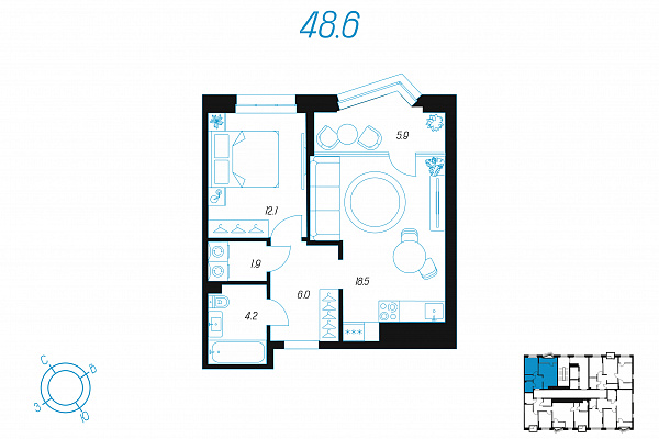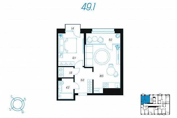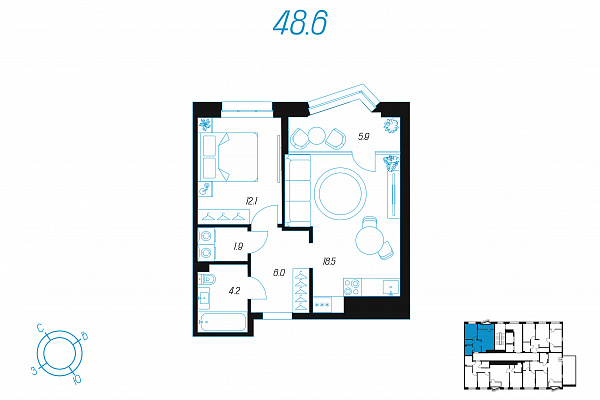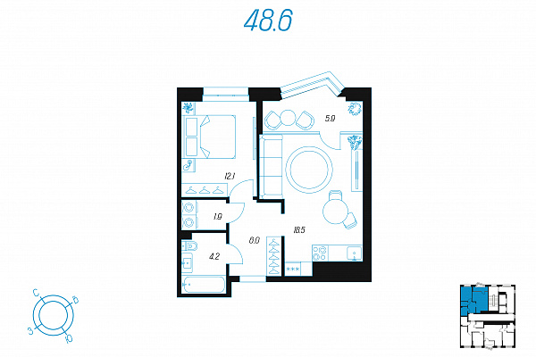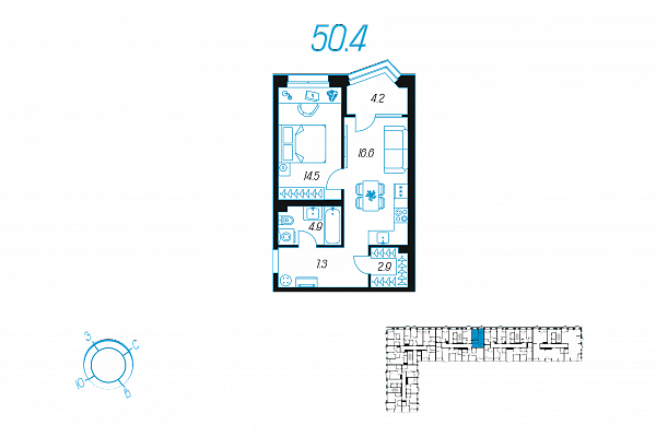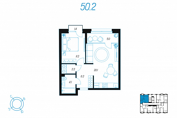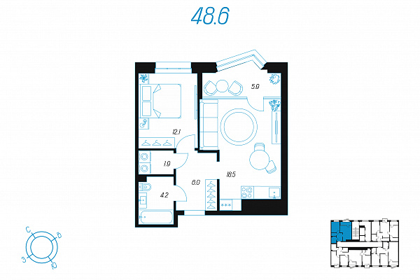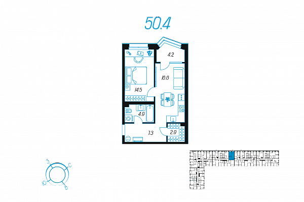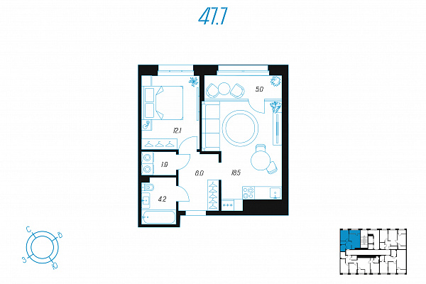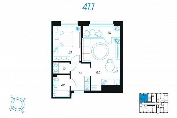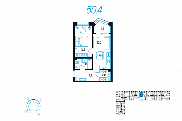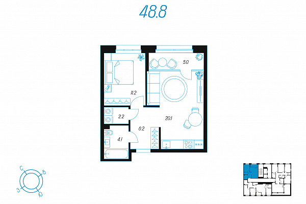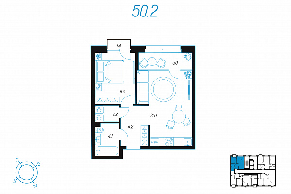 Кол-во комнат 1