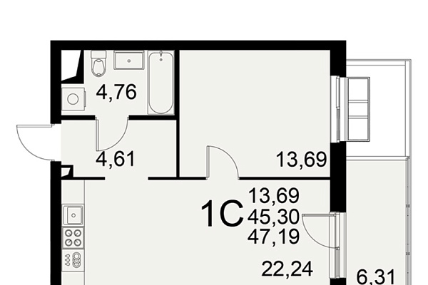 | Площадь (м2) | 46,9 |