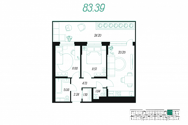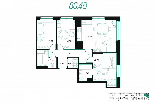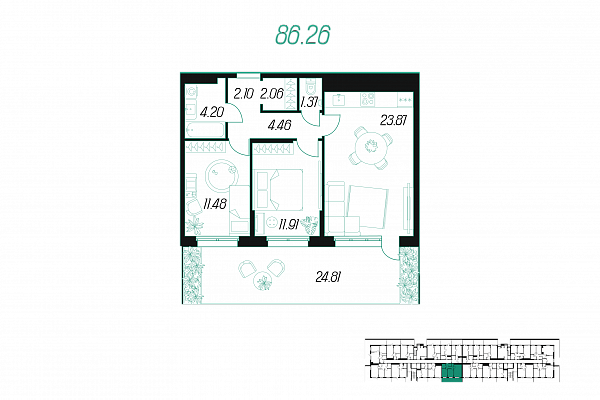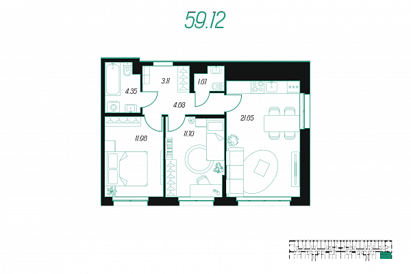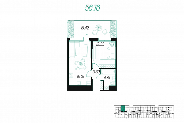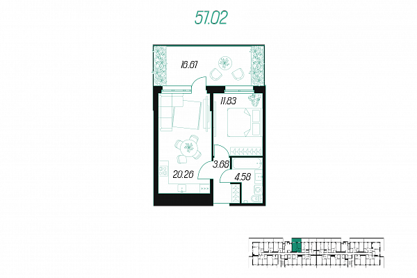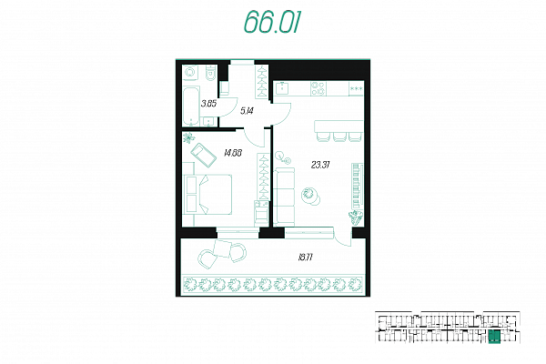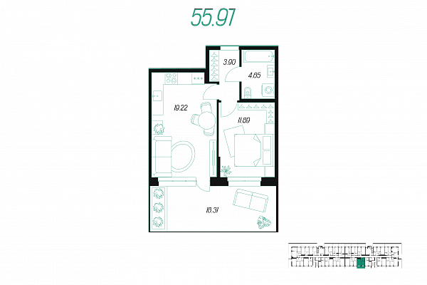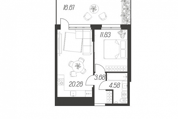 | Количество спален | 1 |
