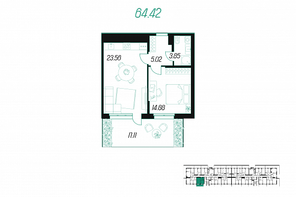 | Кол-во комнат | 1 |